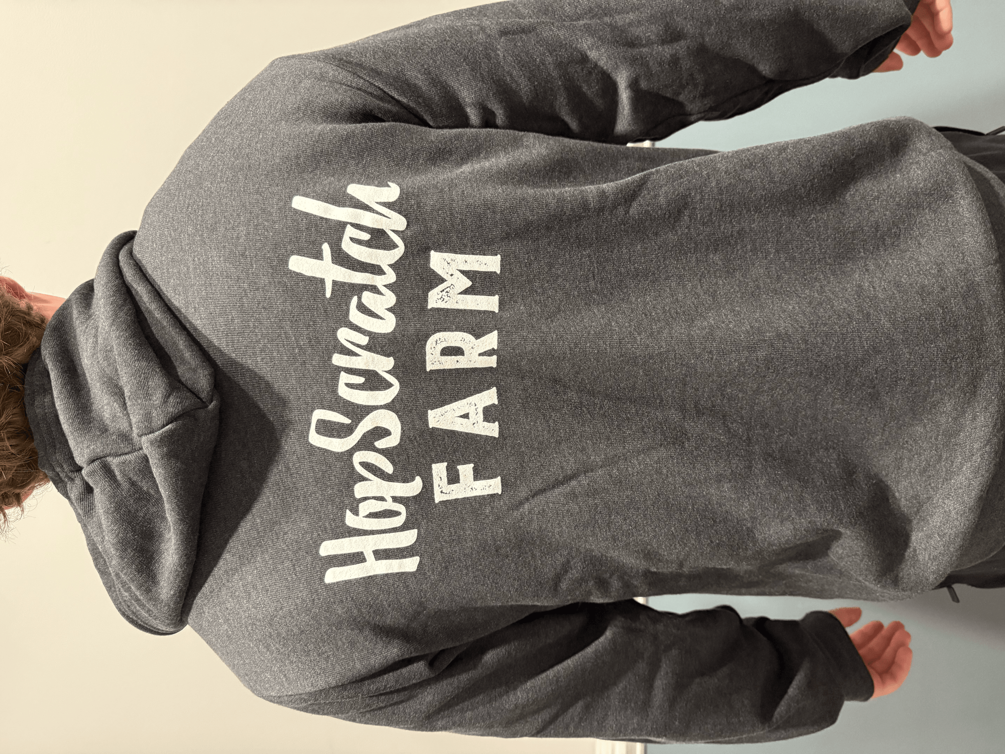 Ultra soft tri-blend T-shirt with HopScratch Farm on the front